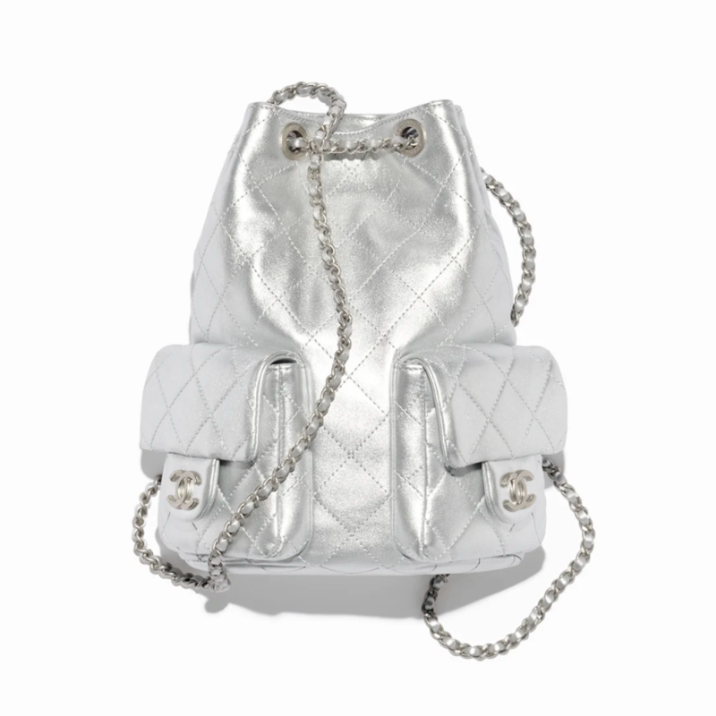 CHANEL Metallic Lambskin & Silver-Tone Metal silver