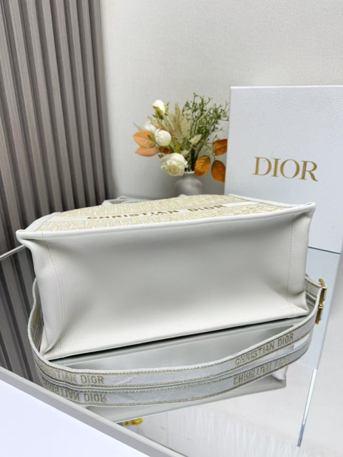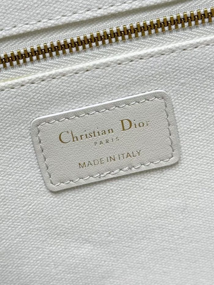 Maria Grazia Chiuri’s hallmark Dior Book Tote is presented in an elegant new variation. The refined style showcases the natural Dior Oblique embroidery and calfskin. Designed to keep all the daily essentials organized, the interior is equipped with a zip pocket and slip pockets. Featuring an adjustable and removable embroidered strap, the practical medium tote exemplifies Dior’s savoir-faire and can be carried by hand or worn over the shoulder.